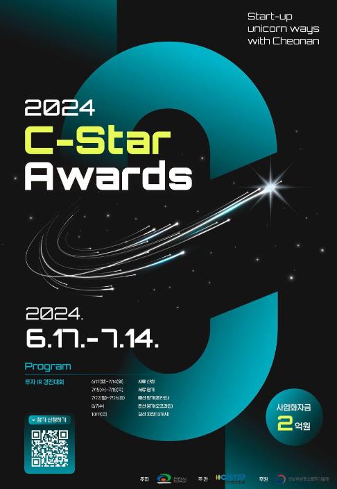 시는 오는 10월까지 ‘C-Star Awards 2024’를 열고 천안의 미래 유니콘 기업(C-Stat)과 우수한 스타트업 인프라를 국내외 창업생태계에 홍보한다고 3일 밝혔다.