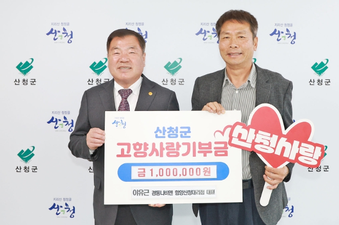 ▲ 이유근 대표, 산청군고향사랑기부제 동참 기부금 100만원 전달 |