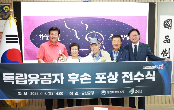 [뉴스서치] 금산군은 지난 9월 5일 국가보훈부 대전지방보훈청과 함께 금산군청에서 독립유공자 고 원인성 지사의 손자 원동수 씨에게 대통령 표창을 전수했다.