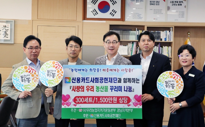 이번 나눔은 신용카드사회공헌재단이 후원하고 (사)우리농업지키기운동본부가 주관하는 ‘사랑의 농산물꾸러미 나눔사업’의 일환으로 진행됐다.