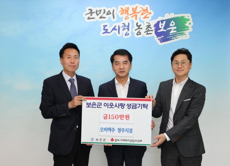 ▲ 오비맥주 청주지점, 보은군에 이웃사랑 성금 150만 원 기탁 |