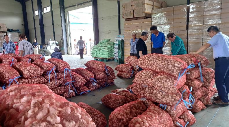 산청군농업협동조합이 주관한 이번 수매는 생초면 마늘작목반 60여 농가가 출하한 건마늘 2000망, 40t 규모다.