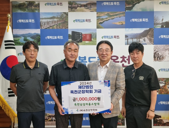 [뉴스서치] 옥천남성의용소방대는 4일 옥천군청을 방문해 옥천군장학회에 장학금 100만 원을 기탁했다.
