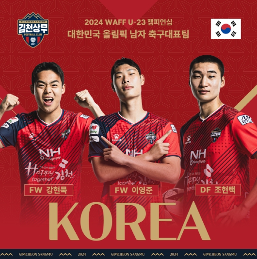 김천상무프로축구단(대표이사 배낙호)의 강현묵, 이영준, 조현택이 사우디아라비아 담만에서 열리는 서아시아축구연맹(WAFF) U-23 챔피언십에 참가한다. 첫 경기는 오는 21일 목요일 오전 2시(한국 기준) 태국전이다.
