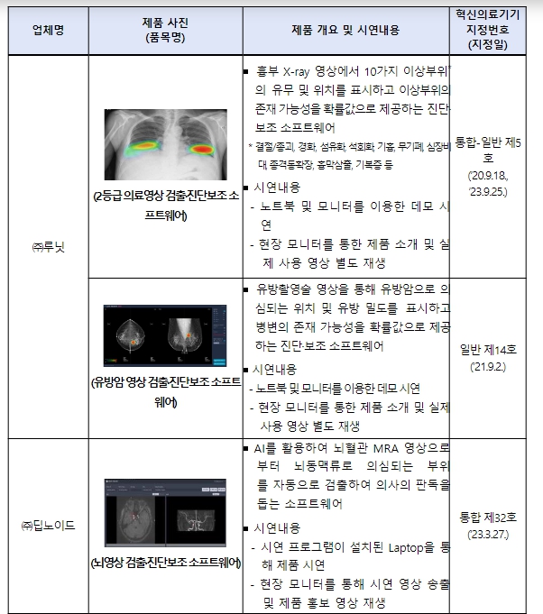 식약처는 「의료기기산업법」에 따라 정보통신기술, 생명공학기술, 로봇기술 등 기술집약도가 높고 혁신 속도가 빠른 분야의 첨단 기술을 적용하거나 사용방법을 개선해 기존의 의료기기나 치료법에 비해 안전성·유효성을 현저히 개선했거나 개선할 것으로 예상되는 의료기기로를 혁신의료기기로 지정하고 있으며 현재까지 60개 제품이 지정됐다.