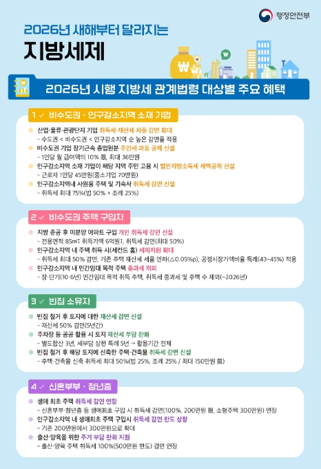 | ▲ 2026년 시행 지방세 관계법령 대상별 주요 혜택 |