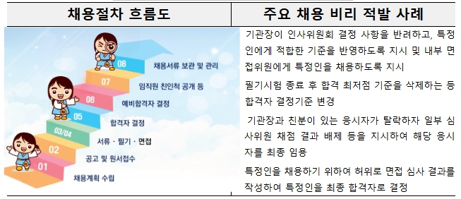 ▲ 채용절차 흐름도 및 주요 채용실태 적발 사례 |