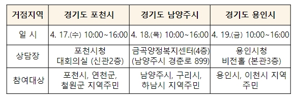 이번 ‘달리는 국민신문고’에서는 포천시, 남양주시, 용인시 지역주민은 물론 인접한 연천군, 철원군, 하남시, 구리시, 이천시 지역주민도 상담을 받을 수 있다.