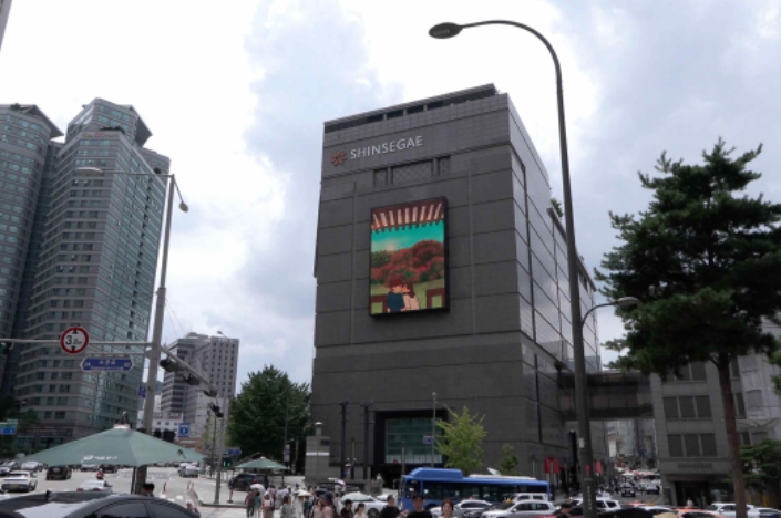 ▲ 신세계백화점 본점 전광판을 통한 시험 송출 모습 |