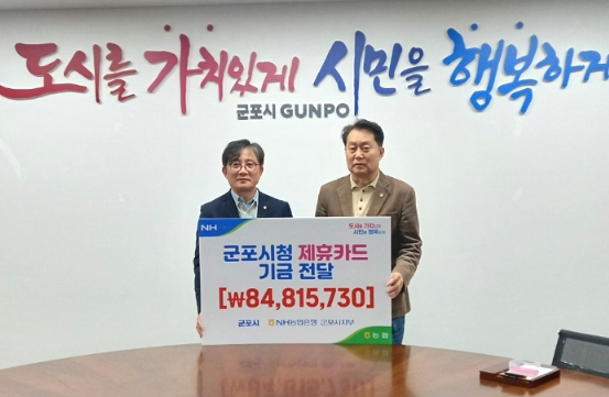[뉴스서치] 군포시는 15일 오전 NH농협은행(군포시청출장소)로부터 2023년도분 제휴카드 적립 기금 84,815천원을 전달받는 기금 기탁식을 치뤘다.