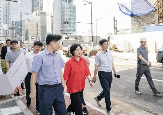 | ▲ 이수희 강동구청장이 5일 고덕비즈밸리 현장을 점검하고 있다. |