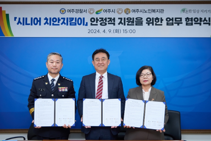 [뉴스서치] 9일 여주시에서는 여주경찰서와 여주시노인복지관과 함께 각 기관이 보유하고 있는 인적·물적 자원의 교류협력을 통해 어르신친화도시 여주로서 활동적인 노년 지원을 위해 어르신의 일자리 창출과 지역방범 및 범죄 예방 그리고 고령자 교통사고 예방활동 등으로 행복도시 여주를 함께 실현하기 위해 기관업무 협약식을 가졌다.