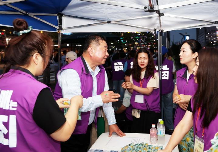 김경일 파주시장을 비롯해 클리어링 50여 명이 함께 한 이번 캠페인은 ▲성매매는 반드시 근절되어야 하는 불법행위임을 시민들이 직접 알리는 ‘나도 한마디’를 시작으로 ▲성매매집결지 폐쇄로 여성 인권 회복과 건강한 파주시 조성을 염원하는 ‘나무야, 소원을 들어줘’ ▲성매매는 우리 주변에서 당연히 사라져야 함을 널리 알릴 수 있는 인스타 포토존 ‘찰칵, 한 컷’ ▲마지막으로 젠더폭력 예방 홍보물품 뽑기 행사 ‘잇템이 한가득’ 등 시민들이 직접 참여할 수 있는 다양한 프로그램으로 진행됐다.