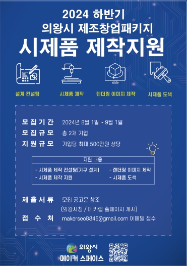 [뉴스서치] 의왕시 메이커 스페이스는 ‘2024년 상반기 의왕시 제조창업패키지 시제품 제작 지원사업’을 성공적으로 마쳤다고 밝혔다.