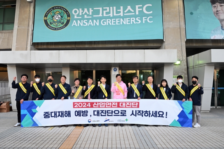 이날 행사에는 이민근 안산시장과 이경환 고용노동부 안산지청장을 비롯한 산업안전 관계자 40여 명이 참석한 가운데, 안산그리너스FC 홈경기를 관람하기 위해 찾은 시민들에게 전단지 배포 등 적극적인 홍보활동을 펼쳤다.
