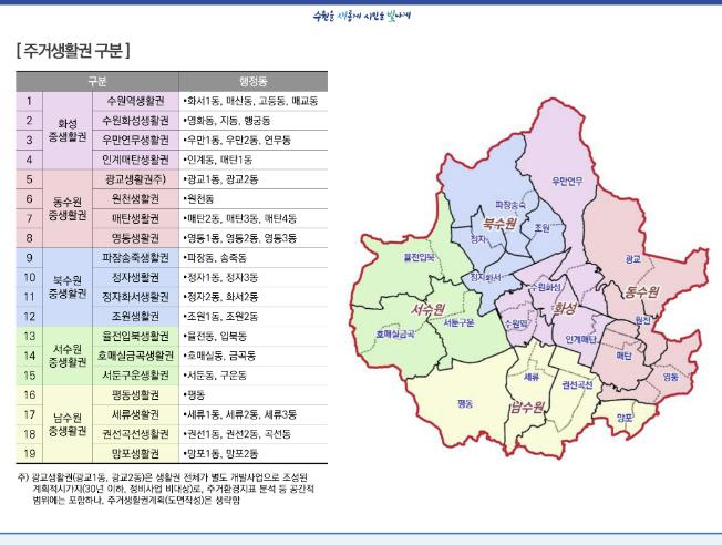 ◇수원시 19개 생활권 구분, 맞춤형 정비 꾀한다