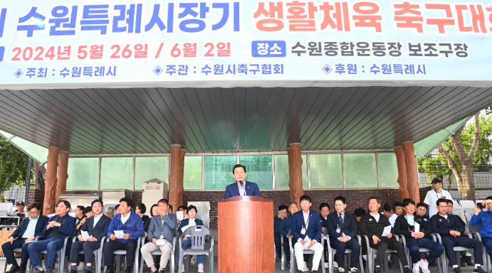 26일 수원종합운동장 보조구장에서 열린 개회식에서 대회사를 한 이재준 수원시장은 “시민 누구나 생활체육을 즐길 수 있는 ‘건강한 체육특례시’를 만들어 나가겠다”며 “시민들이 운동을 하며 건강한 삶을 누릴 수 있도록 지원하겠다”고 말했다.