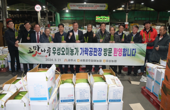 시에 따르면, 이날 방문에는 최원철 시장을 비롯해 황광환 농협시지부장, 이용식 우성조합장, 이웅원 원예농협 상임이사, 우성농협오이공선회원 그리고 세종공주원예농협 오이공선회원 등 40여명이 참여했다.