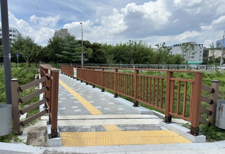이에 동구는 2억5천만원을 투입해 지난해 10월부터 기존 아치형 보도교를 철거하고 올해 4월 평탄화된 보도교 설치 작업을 마무리했다.