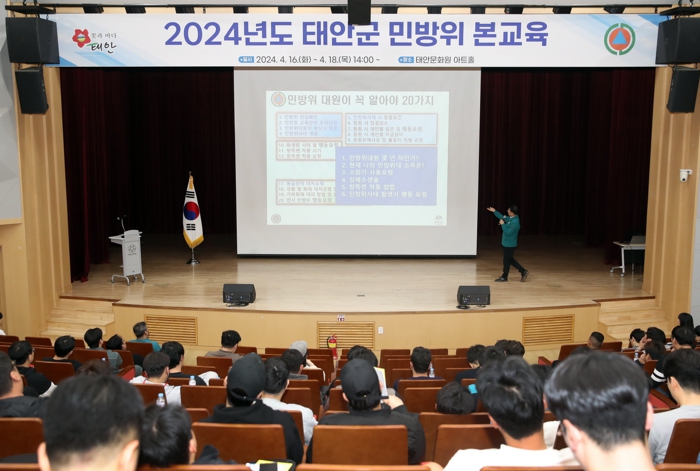 [뉴스서치] 태안군이 16일부터 18일까지 3일간 태안문화원 아트홀에서 민방위 1~2년차 대원들을 대상으로 ‘2024년 민방위 집합교육’을 실시했다고 밝혔다.