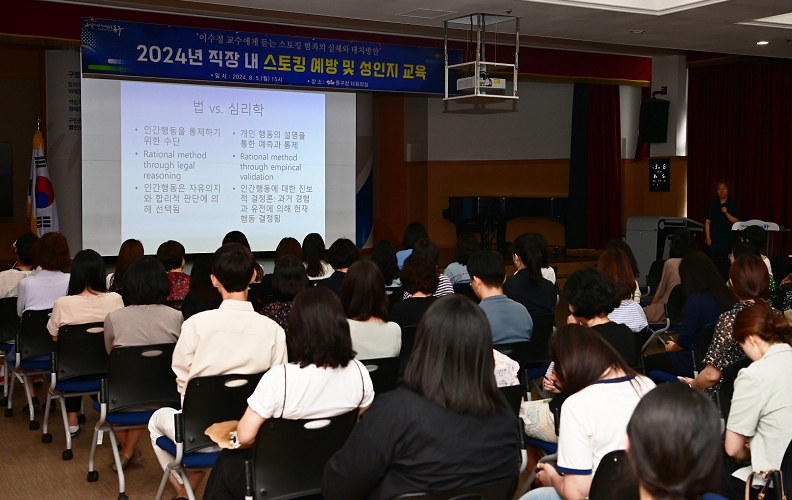 범죄자의 심리분석 및 스토킹 실제 사례 중심으로 진행된 강의는 큰 호응을 얻었으며, 직원들은 스토킹 범죄의 심각성과 대처 방안에 대해 알 수 있는 소중한 시간이었다.