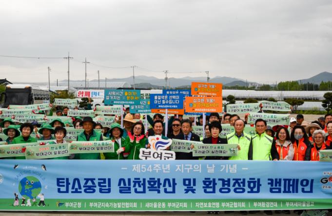 지난해 부여군 2045년 탄소중립 실현을 선언한 박정현 부여군수는 제54주년 지구의 날에 탄소중립 캠페인과 정화 활동에 참여해 준 사회단체 등에 감사의 말을 전하며, “우리 군민들께서는 기후 위기에 따른 자연재해의 시련을 지난 2년 동안 경험했다.”라며 “지금부터라도 지구 환경을 온전히 지켜가기 위해 다 같이 노력하자”라고 강조하였다.