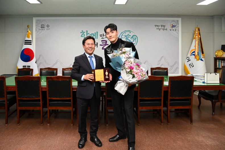 [뉴스서치] 박정현 부여군수는 지난 5일 군수 집무실에서 뮤지컬배우 임정모를 부여군 홍보대사로 위촉하고 위촉패를 전달했다.