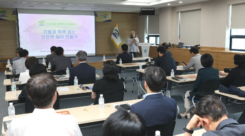 보다 효율적이고 내실 있는 교육을 위해 한국양성평등교육진흥원에서 4대 폭력 전문 강사로 활동 중인 김수자 강사를 초빙해 조직 내 부적절한 성희롱·성폭력 관련 실제 발생 사례와 2차 피해 예방 대책에 대한 교육을 실시했다.