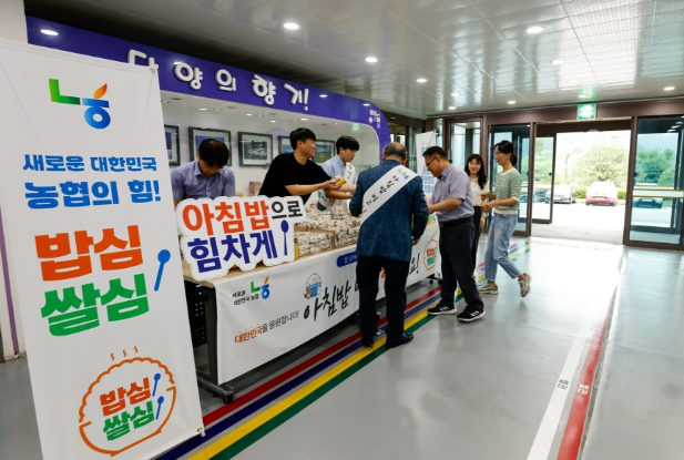 이들은 쌀 소비 촉진을 위해 아침 출근 공무원에게 쌀떡과 쌀음료를 나눠줬다.