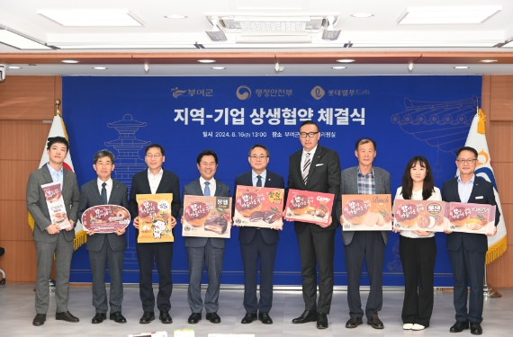 [뉴스서치] 부여군은 지난 16일 부여군청 서동브리핑실에서 행정안전부, 롯데웰푸드와 '지역-기업 상생발전을 위한 업무협약'을 체결했다.