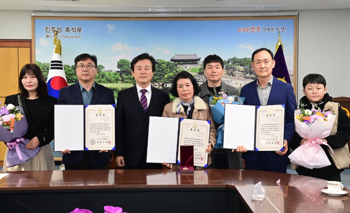 [뉴스서치] 진주시는 지난 18일 6·25전쟁 참전유공자인 故 김복태 중사와 故 천종근 병장, 故 손문조 상병의 화랑무공훈장을 고인의 자녀 김영인 씨와 조카 천희주, 손현식 씨에게 각각 전수했다.