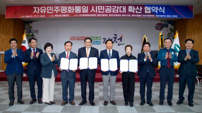 민주평화통일자문회의 제천시협의회는 지난 17일 제천시청 청풍호실에서 "자유민주평화통일 시민 공감대 확산 협약식"을 개최했다.