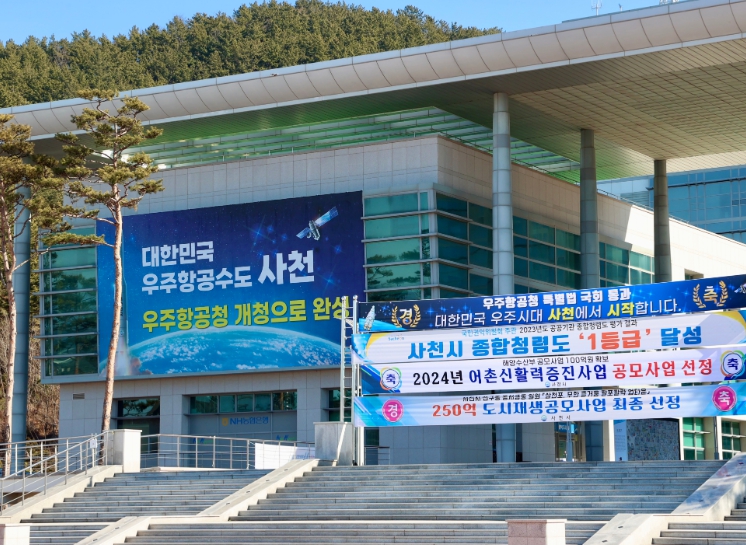 ▲ 우주항공청 개청 현수막이 걸린 사천시청 |