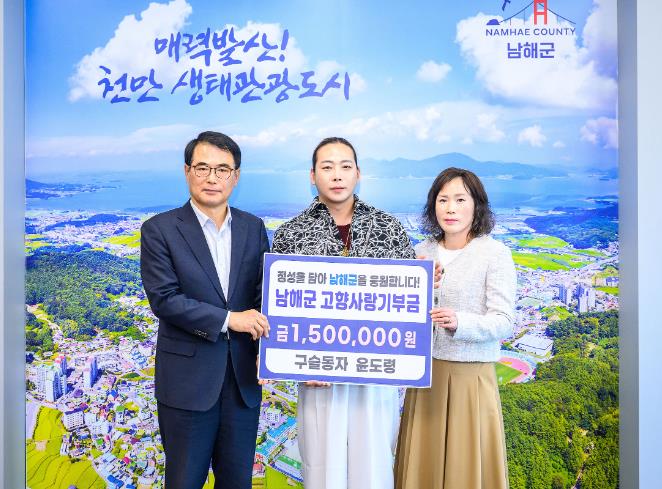 [뉴스서치] 남해군은 ‘구슬동자 윤도령’으로 활동하고 있는 무속인 윤정빈 씨가 고향사랑기부금 150만원을 기탁했다고 밝혔다.