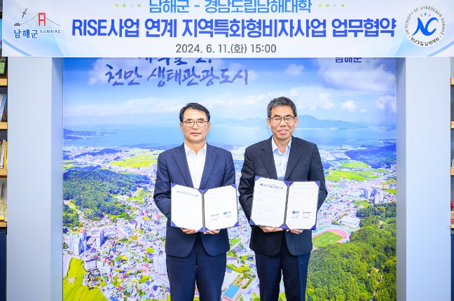 [뉴스서치] 남해군과 경남도립남해대학은 11일 남해군청에서 ‘지역특화형 비자사업’ 추진을 위한 업무협약을 체결했다.