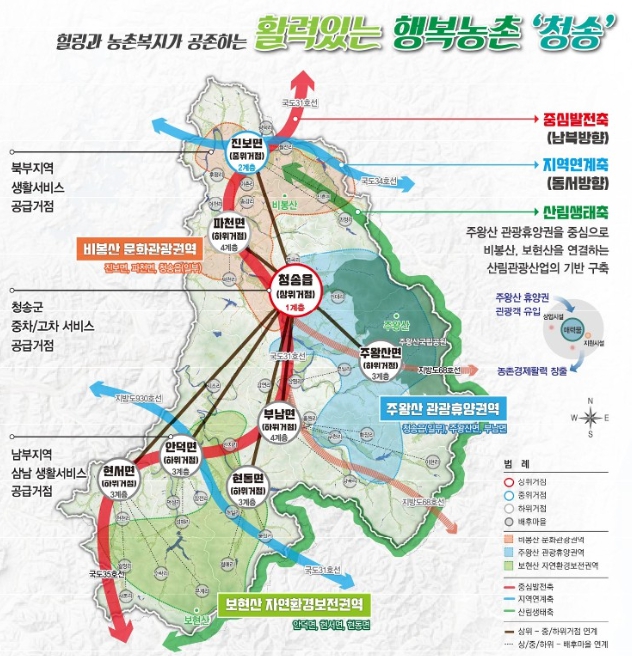 청송군은 농촌중심지 활성화사업이 추진 중인 청송읍을 제외한 7개 면을 대상으로 ▲진보면 농촌중심지 활성화사업 ▲부남·현동·현서·안덕면 기초생활거점 조성사업 ▲주왕산·파천면 지역역량강화 사업을 추진할 것으로 계획하고 있으며 2025년 협약 체결 후 2029년까지 5년간 사업을 추진하게 된다.