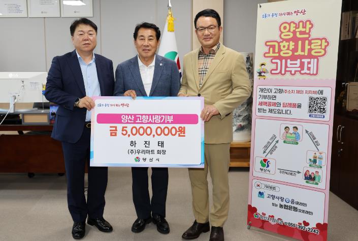 ▲ ㈜우리마트 회장, 양산시에 고향사랑기부 500만원 |