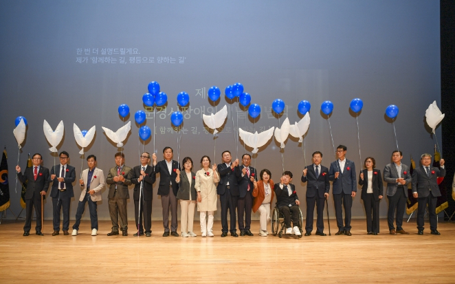 “함께 하는 길, 평등으로 향하는 길”이라는 슬로건으로 개최된 이번 행사는 장구공연, 장애인 가수의 공연과 샌드아트 공연을 시작으로 개회선언, 장애인 인권헌장낭독, 기념사 순으로 진행됐으며, 장애인 권익 향상과 복지 증진에 공이 큰 유공자 18명에게 표창패를 수여했다.