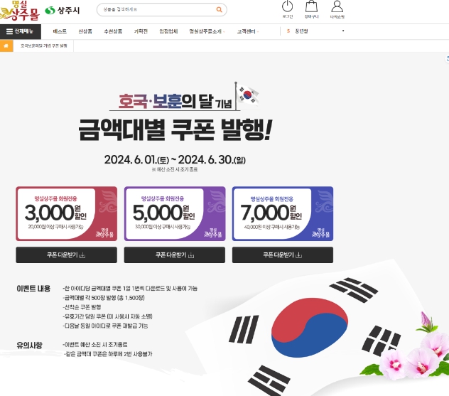 이 외에도 호국보훈의 달 기념 금액대별 할인쿠폰(3종)과 신규회원 할인쿠폰 발행 이벤트가 진행 중이며, 매주 수요일에는 주간특가 행사인“수상하데이”기획전을 실시하고 있다.