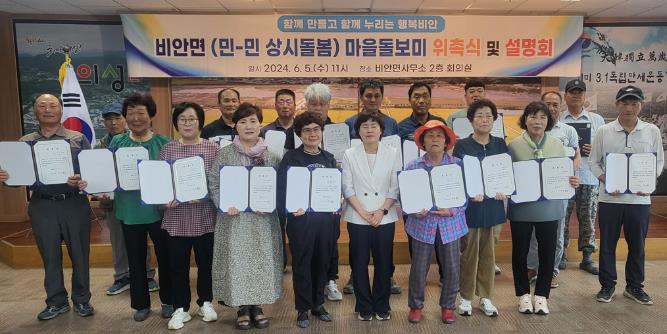 마을돌보미는 2023년 의성군에서 이웃이 이웃을 돌보는 일상 속 돌봄의 생활화를 위해 구축한 마을 단위 조직으로 돌봄이 필요한 마을 주민의 손과 발이 되어 마을의 돌봄 관리자로 2027년까지 활동할 예정이다.