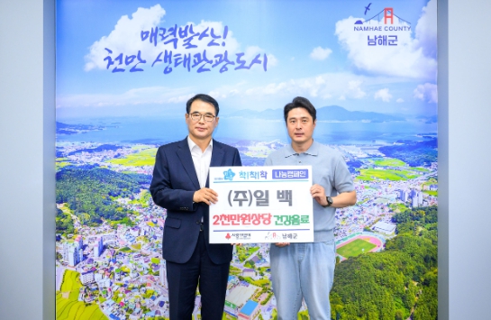 [뉴스서치] 건강식품 제조업체인 ㈜일백 이동한 대표가 지난 10일 남해군청을 방문해 2000만 원 상당의 건강식품을 기탁했다.