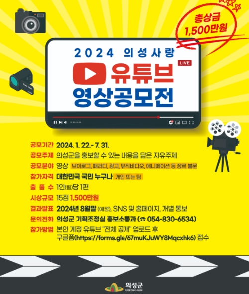 ▲ 의성군, 2024 의성사랑 유튜브 공모전 개최 |