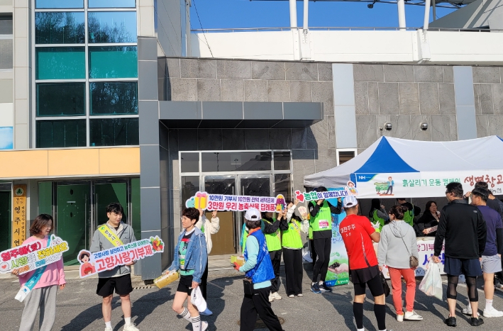 이날 행사에는 영주시청 세무과 직원들과 NH농협 최진수 경북본부장, 박창수 영주시지부장 및 관내 농협 조합장 등 500여 명이 참석해 대회 참가자에게 화분과 리플릿을 배부하며 고향사랑기부제 혜택과 방법을 알리고 기부를 독려했다.