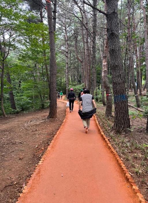 양산시는 최근 건강증진의 방법으로 맨발 걷기에 대한 관심이 높아짐에 따라 웅상지역 시민들의 건강증진 도모를 위해 웅상체육공원 솔밭공원 내에 길이 260m, 폭 0.8에서 1.5m의 황톳길을 건식포장 산책로로 조성했다.