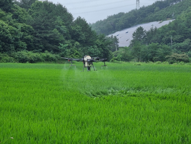 ▲ 하동군, 벼 병해충 선제적 항공·공동방제 |