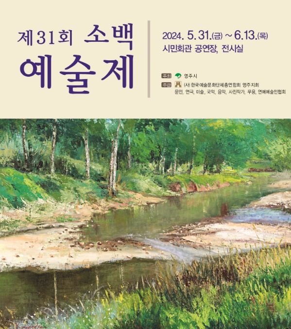[뉴스서치] ‘제31회 소백예술제’가 오는 31일부터 6월 13일까지 14일간 영주시민회관 공연장 및 전시실에서 개최된다.