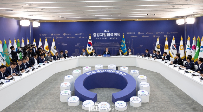 [뉴스서치] 윤석열 대통령은 7월 25일 충남도청에서 제7회 중앙지방협력회의를 주재했다. 오늘 중앙지방협력회의는 저출생 대책과 외국인 정책 등에 대해 예정된 시간보다 1시간 이상 긴 3시간 가까이 열띤 토론을 벌였다.