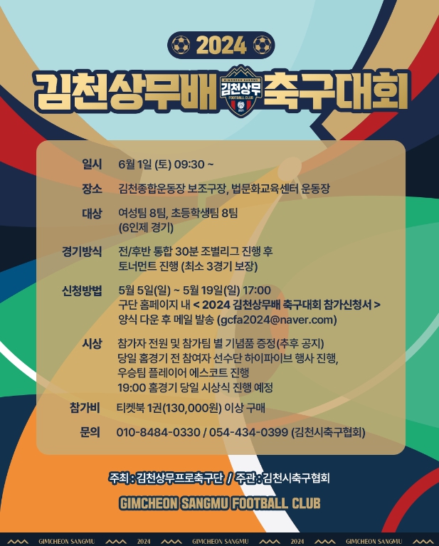 ▲ 김천상무, 2024 김천상무배 축구대회 참가팀 모집 |
