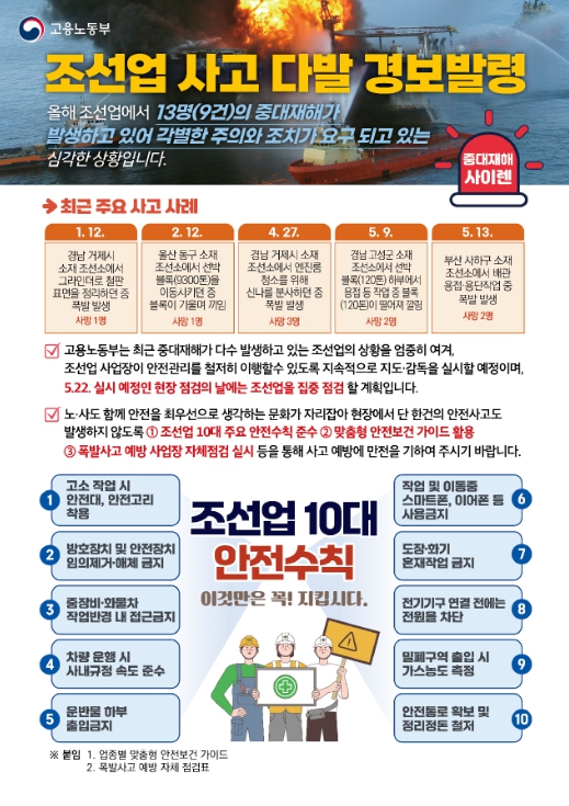 ▲ 「중대재해 사이렌」, 조선업 사고 다발 경보 발령 |