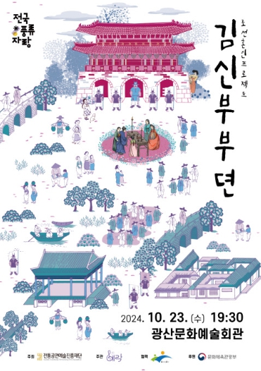 ‘조선혼인프로젝트 김신부부뎐’은 단체의 고유 레퍼토리 개발과 지역의 전통예술 활성화를 위한 전통공연예술진흥재단 ‘2024 지역 전통공연예술 지원 사업’에 공모를 통해 선정돼 ‘전국풍류자랑’의 일환으로 공연된다.